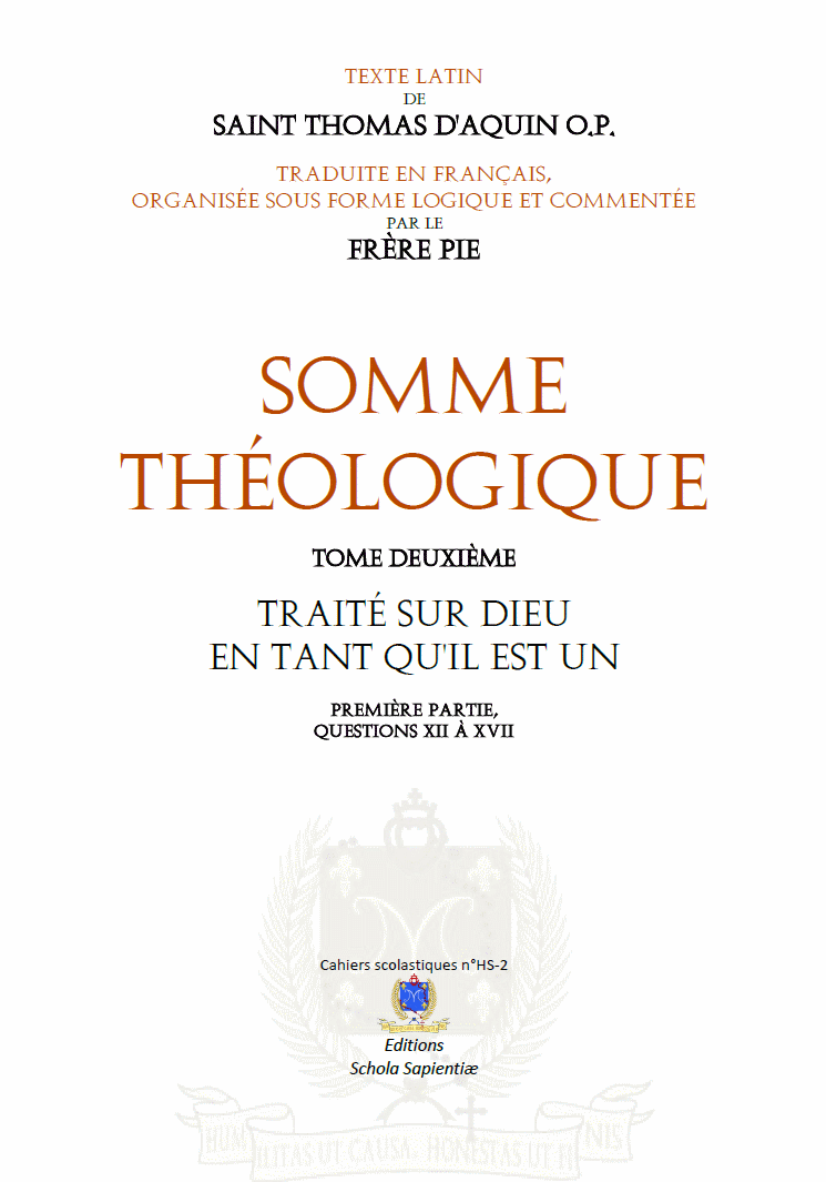 Suivant le découpage initié par la revue des jeunes dans les années 1920, cette deuxième partie du De Deo Uno renferme les questions XII à XVII de la prima pars.